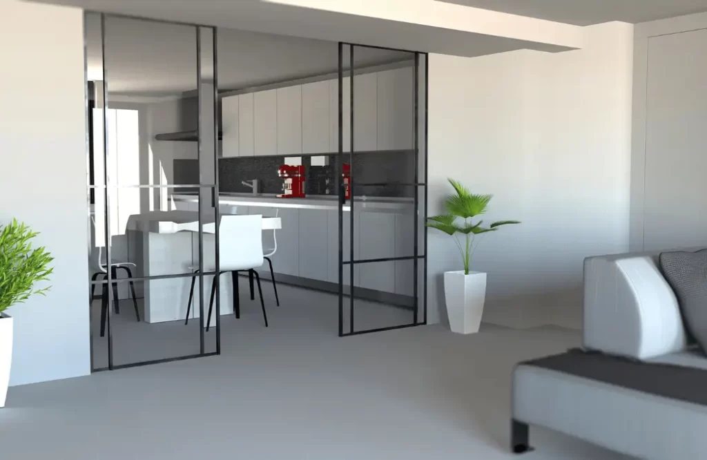 Inspired by international interior trends, glass partitions create a luxury feel—ideal for offices, modern kitchens, hallways, or balconies.